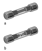 Note: Image A is a good fuse, while image B depicts a burnt fuse. - If the fuse has burned out, replace with the following: